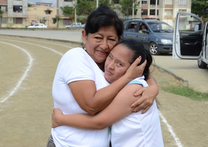 Llegar a la meta y abrazar a su mamá Elena fue el mayor premio que pudo recibir la atleta de Guayas, Lissette Salgado Chávez.