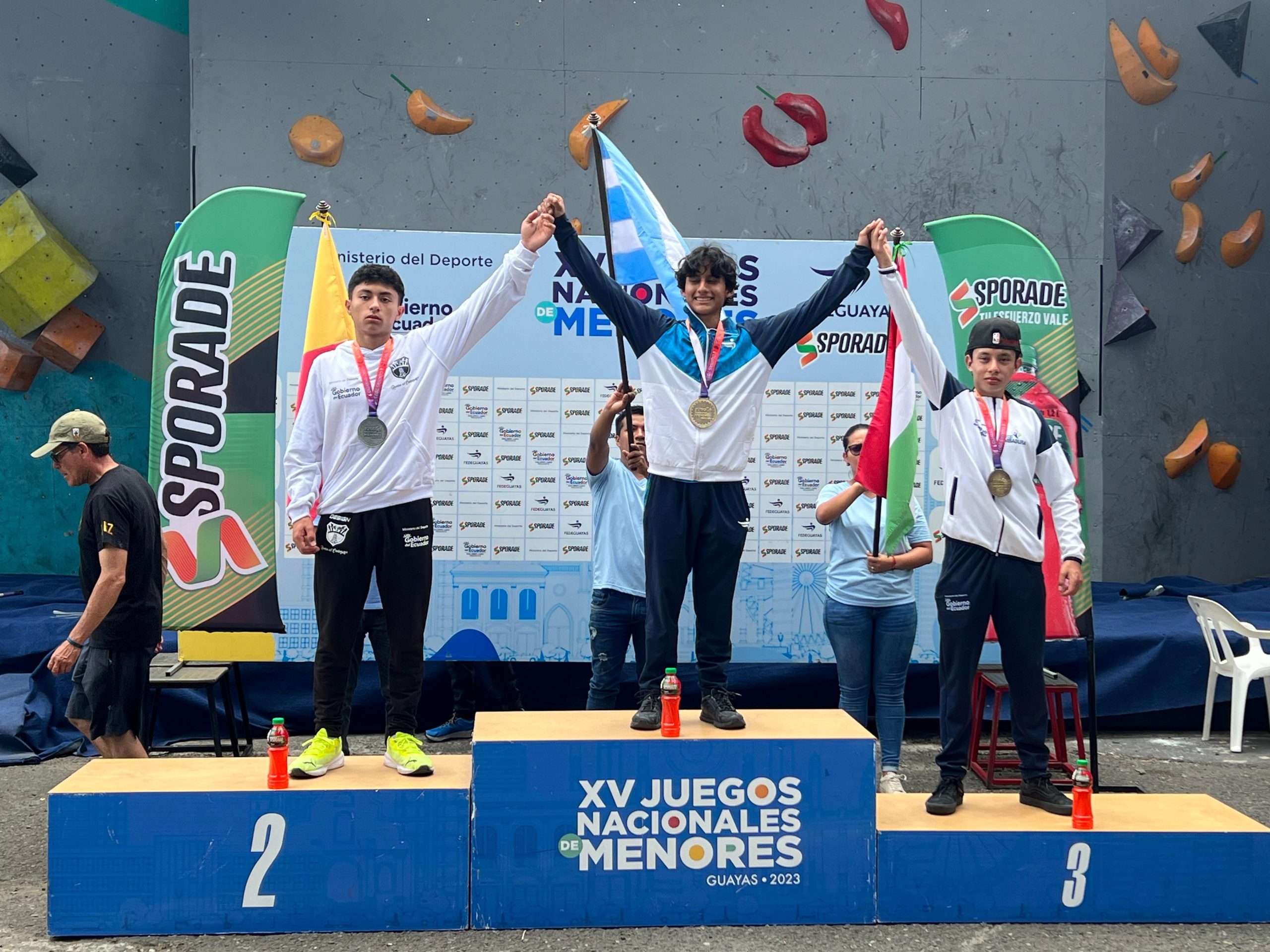 Guayaquil (Guayas). A un día del final de los Juegos Nacionales de Menores, se vivió una jornada llena de grandes actuaciones destacadas en atletismo y escalada. Gabriela Díaz, de Chimborazo, se alzó con la medalla de oro en los 295 metros vallas, al registrar un tiempo de 45.20s. Tiffany Tevanta, El Oro, se llevó la plata con 45.86s; mientras que, el bronce fue para Gloria Cañola, Pichincha, con 46.23s.“Me siento my orgullosa de poder aportar con una medalla más a mi provincia y dejar en lo más alto los colores de su bandera. Agradezco a todas las personas que me han apoyado, en serio muchas gracias”, expresó Díaz.En la rama masculina de la misma prueba, el guayasense José Luis Guevara se coronó campeón con un crono de 39.17s, seguido muy de cerca por Mateus Méndez (Esmeraldas), quien se ubicó segundo con 39.19s. Luis Campoverde (Azuay) fue tercero al cruzar la línea de meta en 40.08s. Por otro lado, la modalidad bloque de escalada Alejandra Vega (Pichincha) conquistó la cima del podio, seguida por las guayasenses Valentina Flores y Laura Delgado. Piero Luna (Guayas) se colgó la dorada, Daniel Peña (Pichincha) la plateada y Benjamín López (Imbabura) se llevó el bronce.El espíritu competitivo estuvo en su punto más alto, y los jóvenes atletas demostraron su perseverancia y determinación en cada competencia.