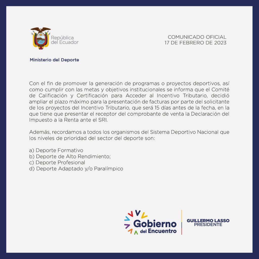 Comunicado del Incentivo Tributario
