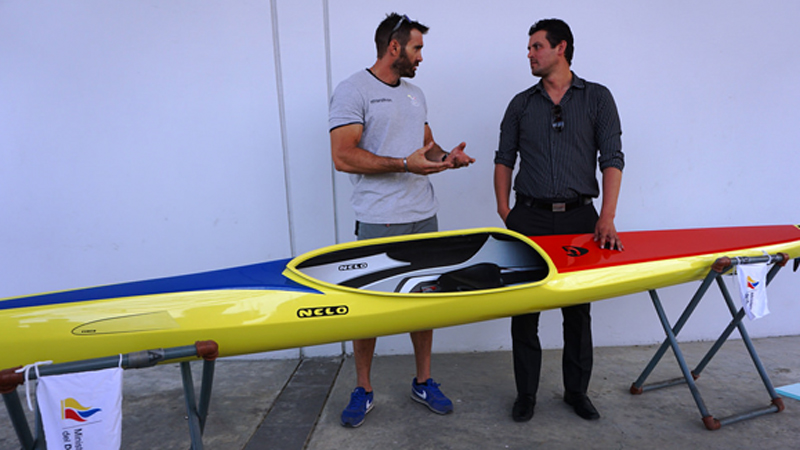 Guayaquil (Guayas).- Previo a su participación en los Juegos Olímpicos de Río de Janeiro, el canoísta ecuatoriano César De Cesare recibió un bote de fabricación portuguesa por parte del Ministerio del Deporte.