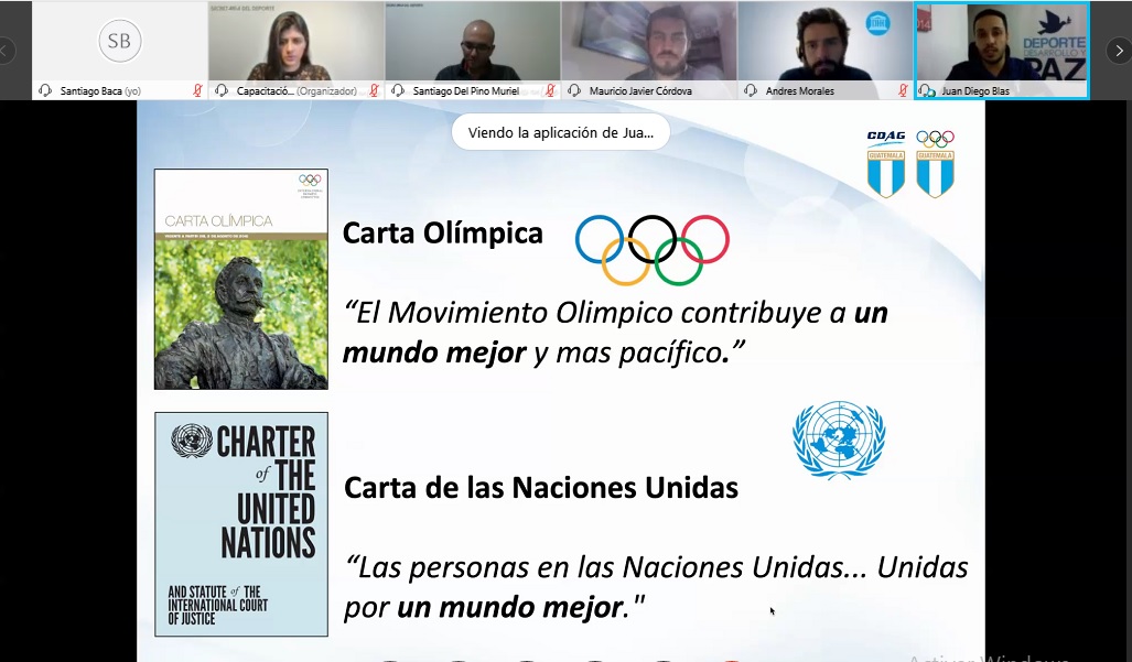 Quito (Pichincha).- Como parte de la programación de capacitaciones virtuales propuesta por la Secretaría del Deporte, se llevó a cabo esta tarde el evento internacional “Deporte para el desarrollo”, con la participación de expertos de varias organizaciones.