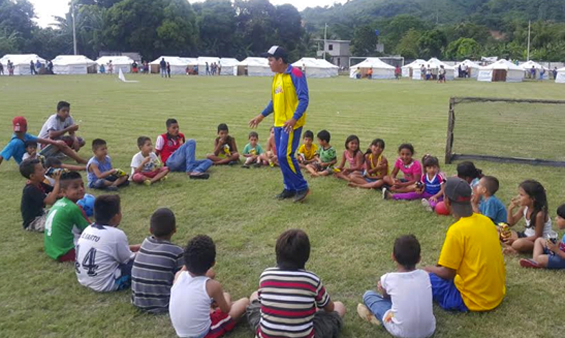 Portoviejo (Manabí).- Instructores del programa Ecuador Ejercítate llevan deporte y recreación a los niños ubicados en varios albergues de Manabí y Santo Domingo de los Tsáchilas, luego de ser afectados por el terremoto del pasado sábado 16 de abril.