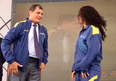 Tras su discurso, Jacqueline entregó la chompa de la línea de ropa de alto rendimiento al Presidente Correa y no desaprovechó la oportunidad de agradecerle por su gestión. “Nosotros como embajadores del deporte dejamos en las competencias nuestra alma, vida y corazón; por eso a usted Señor Presidente le agradecemos por ese apoyo, sólo esperamos conseguir muchas medallas olímpicas y así convertir al Ecuador en un referente del deporte mundial”, concluyó.