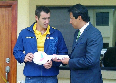 Antes del evento, el Ministro Cevallos hizo la entrega simbólica de las llaves de la vivienda, luego destacó el esfuerzo del deportista en cada uno de sus entrenamientos y competencias.