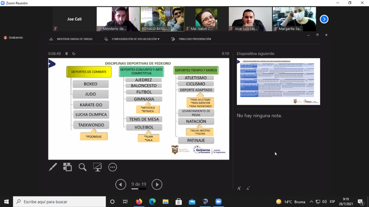 Zamora (Zamora Chinchipe).- Con el objetivo de conocer el estado actual de las Federaciones Deportivas Provinciales de la Zona 7 (El Oro, Loja, Zamora Chinchipe), este miércoles, se desarrollaron las mesas de trabajo virtuales con la dirección de funcionarios del Ministerio del Deporte matriz y Coordinación Zonal 7.