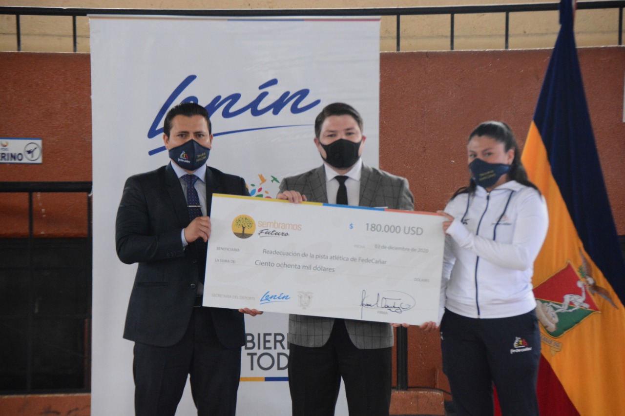 Azogues (Cañar). –Hoy El Gobierno Nacional, a través de la Secretaría del Deporte, entregó el Proyecto de Readecuación de la Pista Atlética del Estadio Federativo en Azogues, que tendrá una inversión de 180.000 USD y que beneficiará a deportes como salto largo, triple lanzamiento de bala y jabalina entre otros.