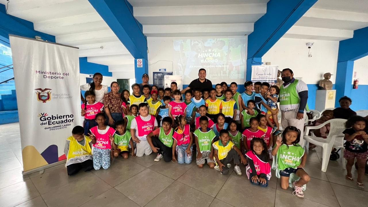 Guayaquil (Guayas). Beneficiarios y padres de familia del proyecto Hincha De Mi Barrio disfrutaron de una actividad diferente donde mantuvieron un diálogo directo con Carlos Morán, Coordinador Zonal 8 del Ministerio del Deporte.