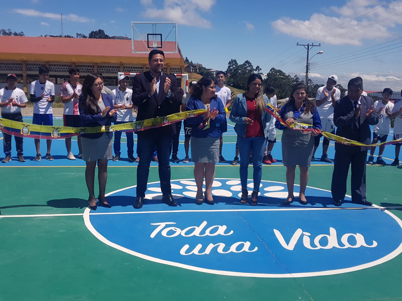 Paltas (Loja).- Una cancha de uso múltiple, se entregó esta mañana en la Unidad Educativa Paltas, del cantón que lleva el mismo nombre, ubicada en la provincia de Loja. Este escenario deportivo es parte del proyecto de Juego Limpio 2030, que implementa el Gobierno Nacional, a través de la Secretaría del Deporte.