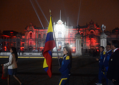 En el paseo Chabuta Brands de Lima se congregaron las delegaciones que participarán de los I Juegos Suramericanos de la Juventud para participar de la ceremonia de inaugruación que tuvo la presencia del presidente Ollanta Humala.