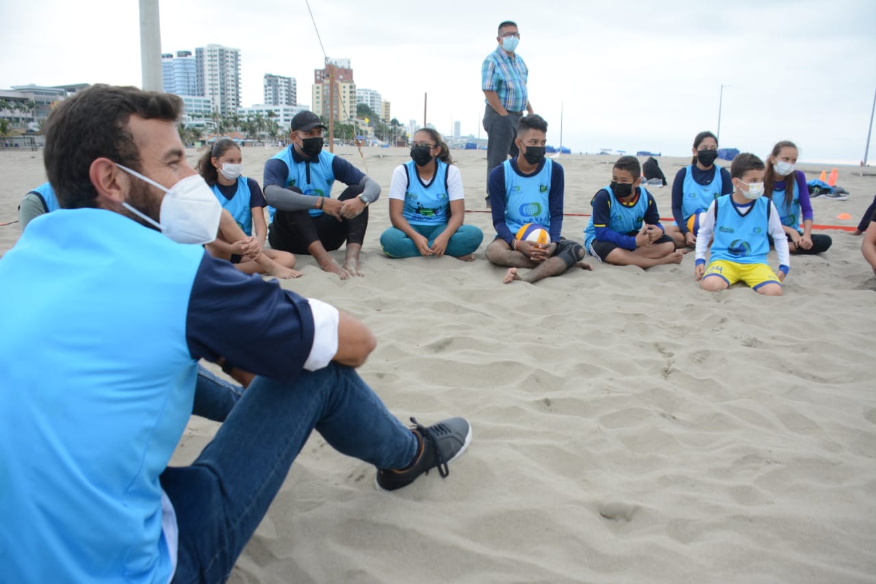 La agenda continuó en el Malecón Escénico, donde los funcionarios ministeriales observaron los entrenamientos de la selección absoluta de fútbol playa de Ecuador, que participará en las eliminatorias mundialistas a cumplirse en los próximos días en Brasil, compartieron experiencias con infantes y jóvenes del Club de Voleibol Playa Dolphin y presenciaron las prácticas de veleristas locales.