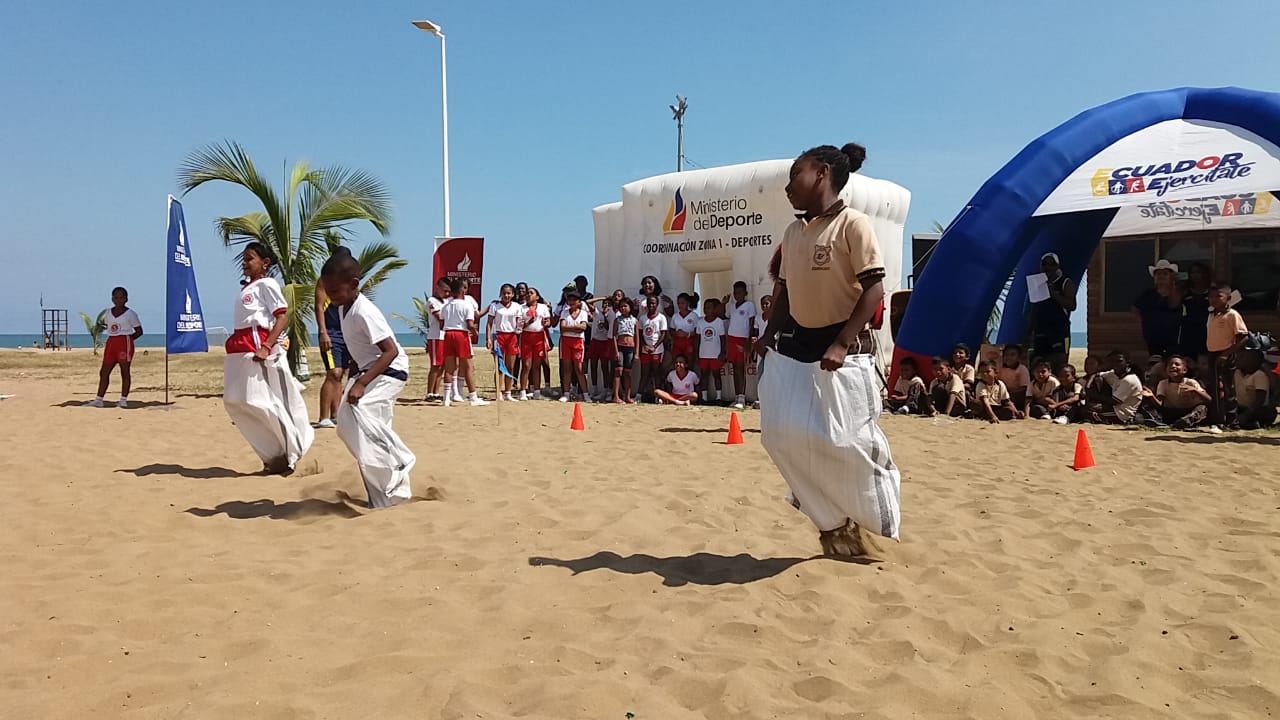 De 08h30 a 12h00, fue el turno para los estudiantes de las Unidades Educativas Manuel Nieto Cadena, Nuevo Ecuador, Guayaquil y Modesto García, quienes se divirtieron y recrearon gracias a la segunda edición de Ecuador Playero en la Playa Las Palmas de Esmeraldas.
