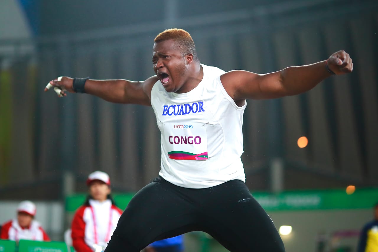 Lima (Perú).- Está noche brilló para Ecuador gracias a la actuación del equipo de impulsión de bala F20 con un nuevo triplete a cargo de Jordi Congo, quien se adjudicó oro con una marca de 15,96 m (Récord Parapanamericano), Stalyn Mosquera plata con 15,35 m y Frank Yépez bronce con 13,58 m.