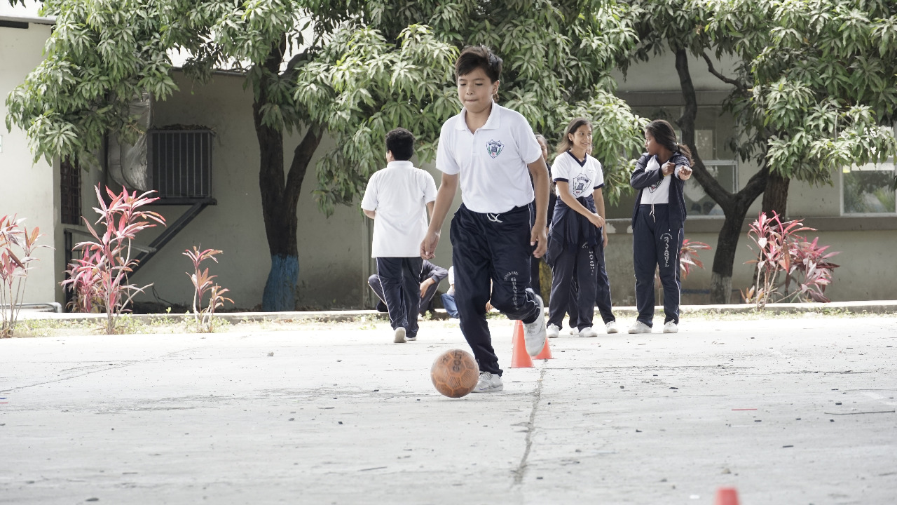 Junto a Omar, aproximadamente 100 damas y varones de 12 a 17 años disfrutan de las clases de fútbol sala que se dictan de lunes a viernes de 10h00 a 11h00 y de 12h00 a 13h00 en el icónico centro educativo de la ciudad.