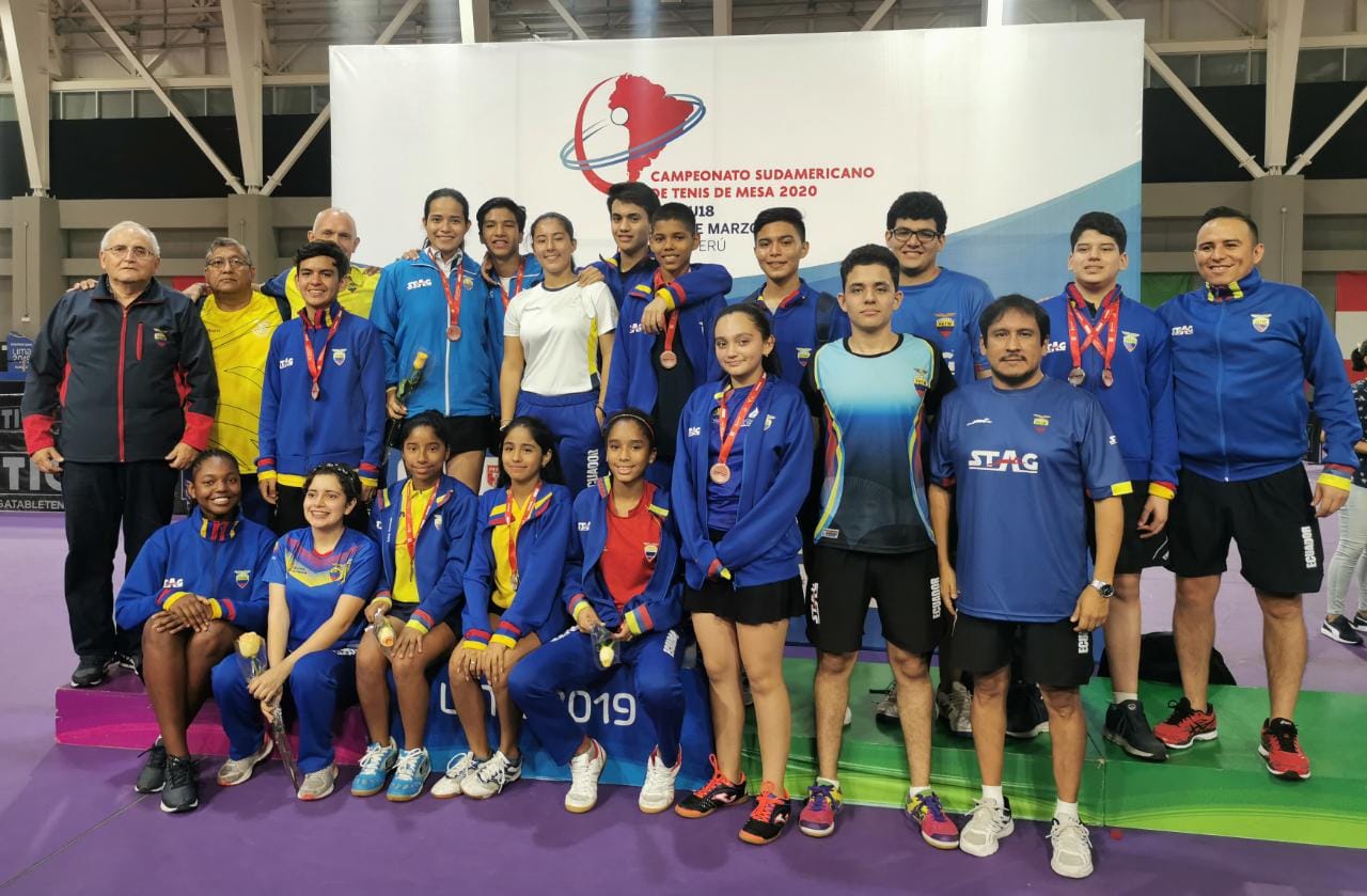 Cuenca (Azuay). – El pasado fin de semana, Ecuador logró siete podios durante su participación en el Campeonato Sudamericano de Tenis de Mesa, que se desarrolló en Lima. Jeremy Cedeño (plata individual), Alejandra Veintimilla, Neicer Robalino (bronce en dobles mixtos), Diego Piguave, Jeremy Cedeño, Paúl Ponce, Joseph Vázquez (plata en equipos varones), Jeremy Cedeño, Diego Piguave (plata en dobles categoría cadetes), Paúl Ponce, Joseph Vázquez (bronce en dobles), Ma. José Borja, Keymi Anchundia (bronce en dobles), Fiorella Olaya, Génesis Macías (plata en dobles), destacaron en este evento deportivo.