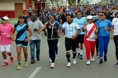Paola Cabezas, Gobernadora de Esmeraldas, y María Tobar, Coordinadora de la Zona 1 del Ministerio del Deporte, fueron las encargadas de dirigir la carrera 5 K con la que inició la jornada.
