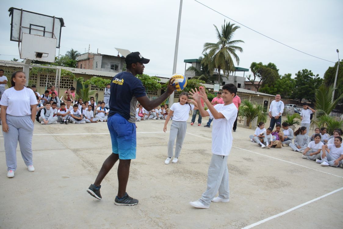 Luego de la inauguración, los jugadores de la selección ecuatoriana de Voleibol, realizaron una exhibición, compartiendo con los estudiantes de la Unidad Educativa.