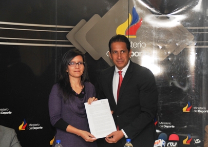 El Ministro del Deporte, José Francisco Cevallos, y la Subsecretaria General de Educación Superior, Pilar Troya, en nombre del Secretario de Educación Superior, Ciencia y Tecnología, Secretario, René Ramírez, estamparon su firma en el convenio que da inicio a los Institutos Técnicos Superiores del Deporte.