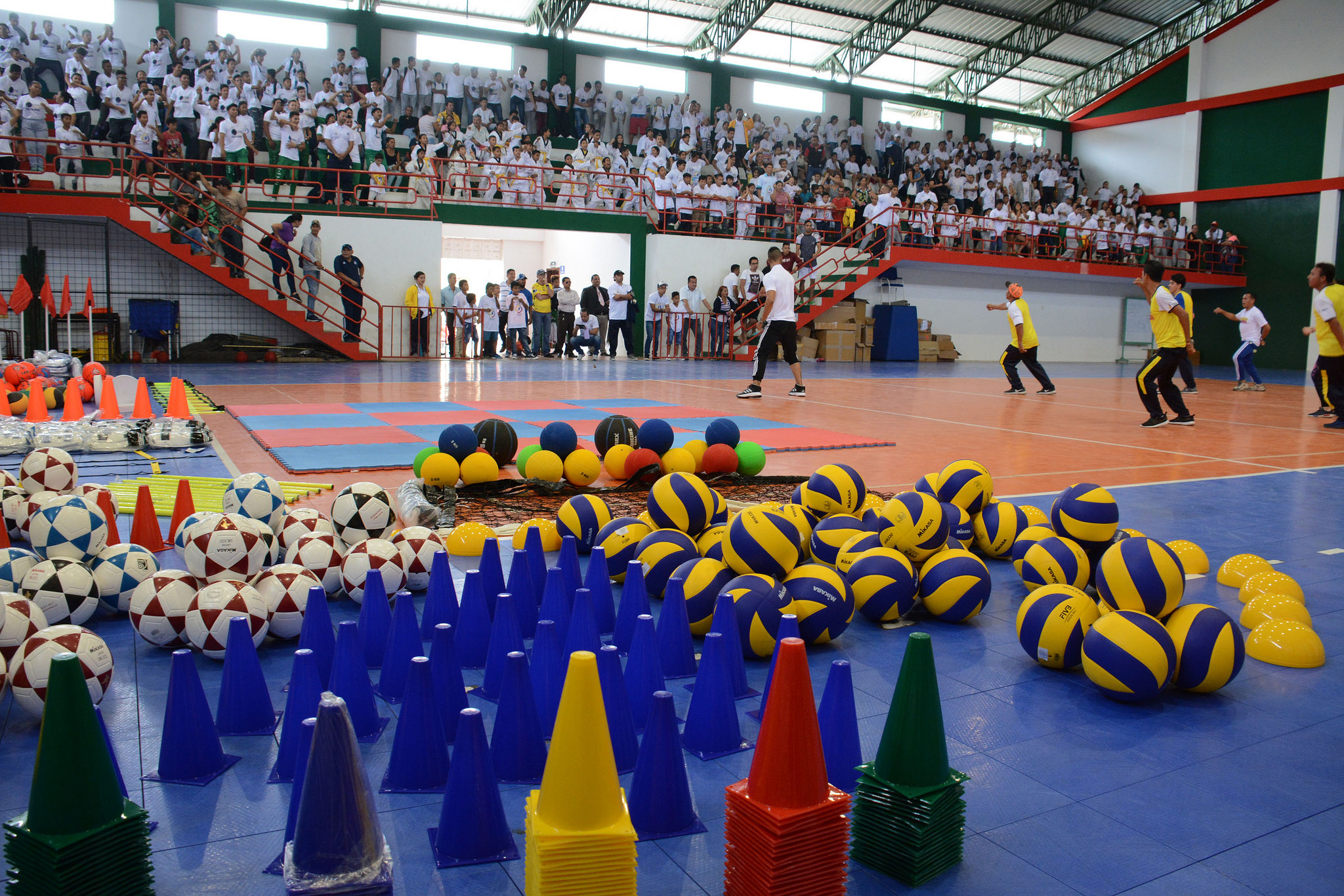 Entre los implementos que se entregará constan estacas para fútbol sala, conos plásticos, escaleras de habilidad, balones de fútbol sala, camisetas, balones de baloncesto, pelotas medicinales y uniformes para los entrenadores.
