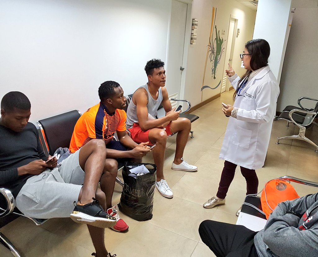 Jugadores del Técnico Universitario durante los exámenes médicos.