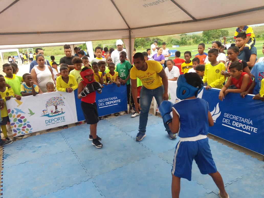 Beneficiarios de las jornadas gratuitas de fútbol y boxeo de los proyectos Actividades Deportivas Extraescolares, Escuelas de Iniciación Deportiva y Actividades Físicas Rítmicas y Recreativas, así como deportistas en formación de las Ligas Deportivas Cantonales se miden en los encuentros del campeonato que realiza la Coordinación Zonal 8 de la Secretaría del Deporte.